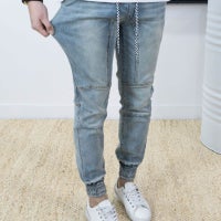 빈티지 스판 9부 테이퍼드 배기핏 조거 밴딩 연청바지 [2컬러] 빅사이즈19,900원무료모다로코네이버페