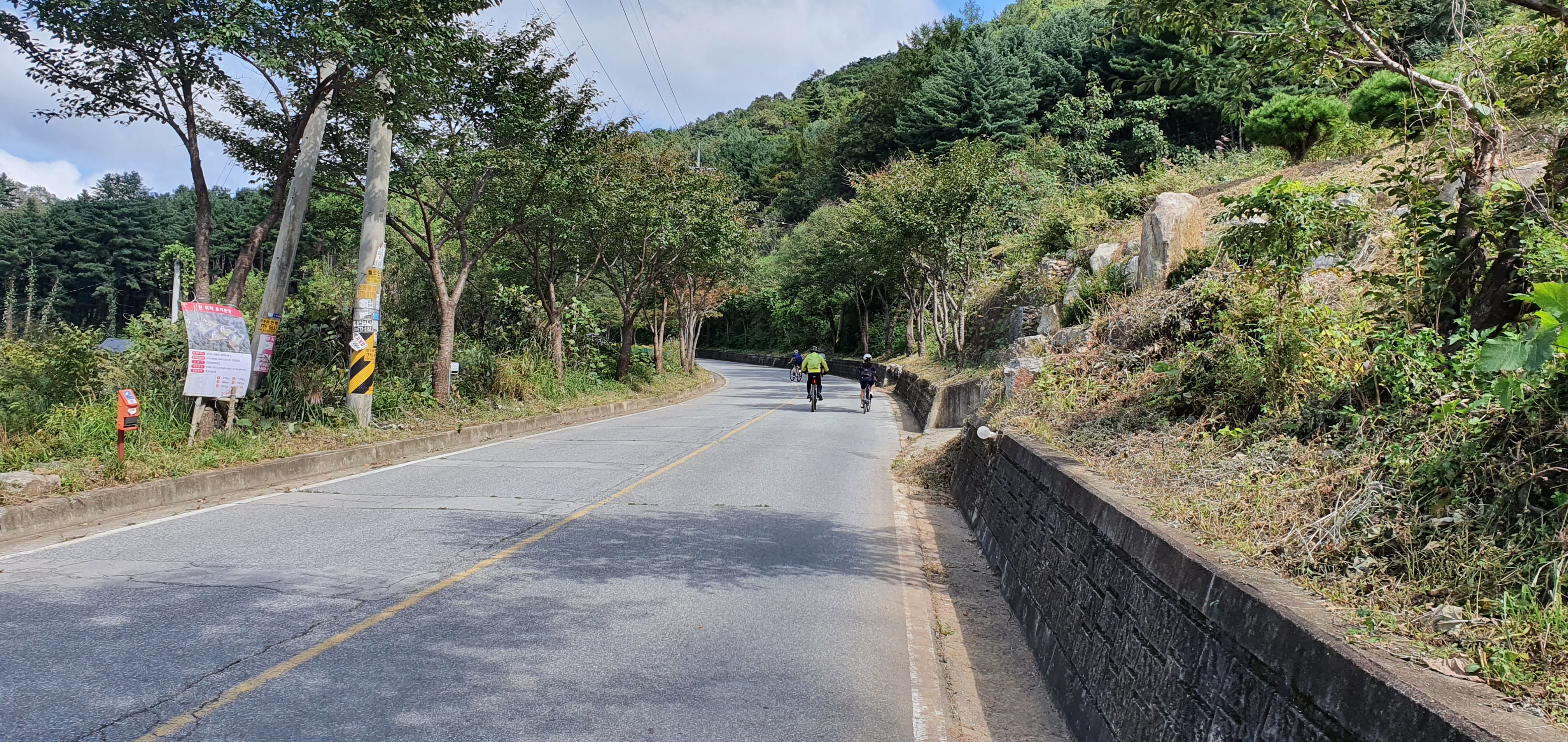 마지막 중미산은 길다 410m 정도인데 내리막길이 어려웠다. (옆에서 차들이 쌩쌩 달리는데 다른 라이더 분들은 잘 내려가시더라....나는 드롭바 잡고 다운힐을 하다가 포기, 브레이크 후드잡고 정말 슬슬슬 안전하게 내려왔다. (다운힐 속도를 포기 했다고 보면 됌..ㅜㅜ)