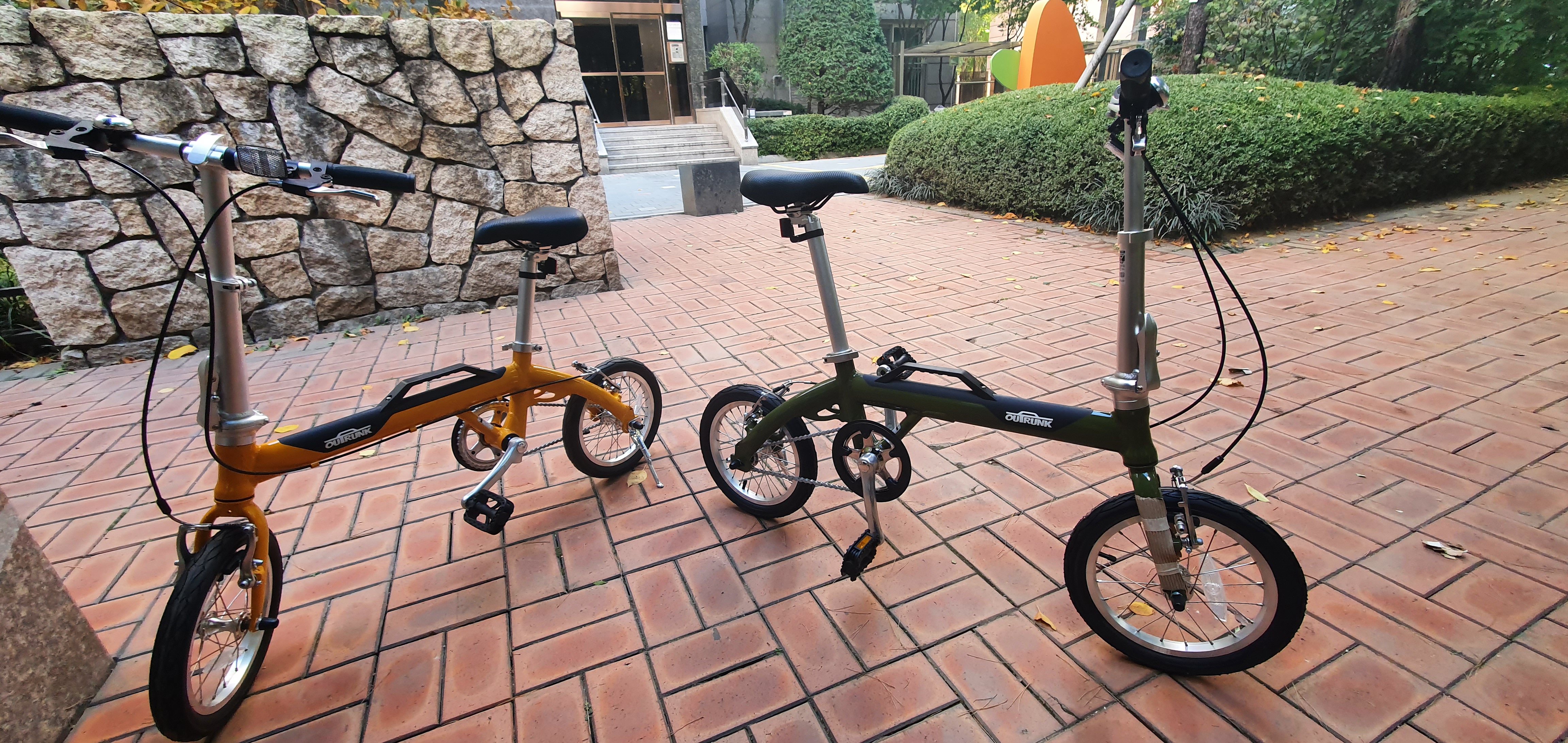 차에 두대 넣어봤는데 넉넉하지는 않지만 무리없이 잘 들어간다. 아이와 함께 5.3km 동네라이딩을 해봤는데 언덕길도 잘 올라가고 바퀴가 작아도 간단한 장애물도 잘 극복해낸다.