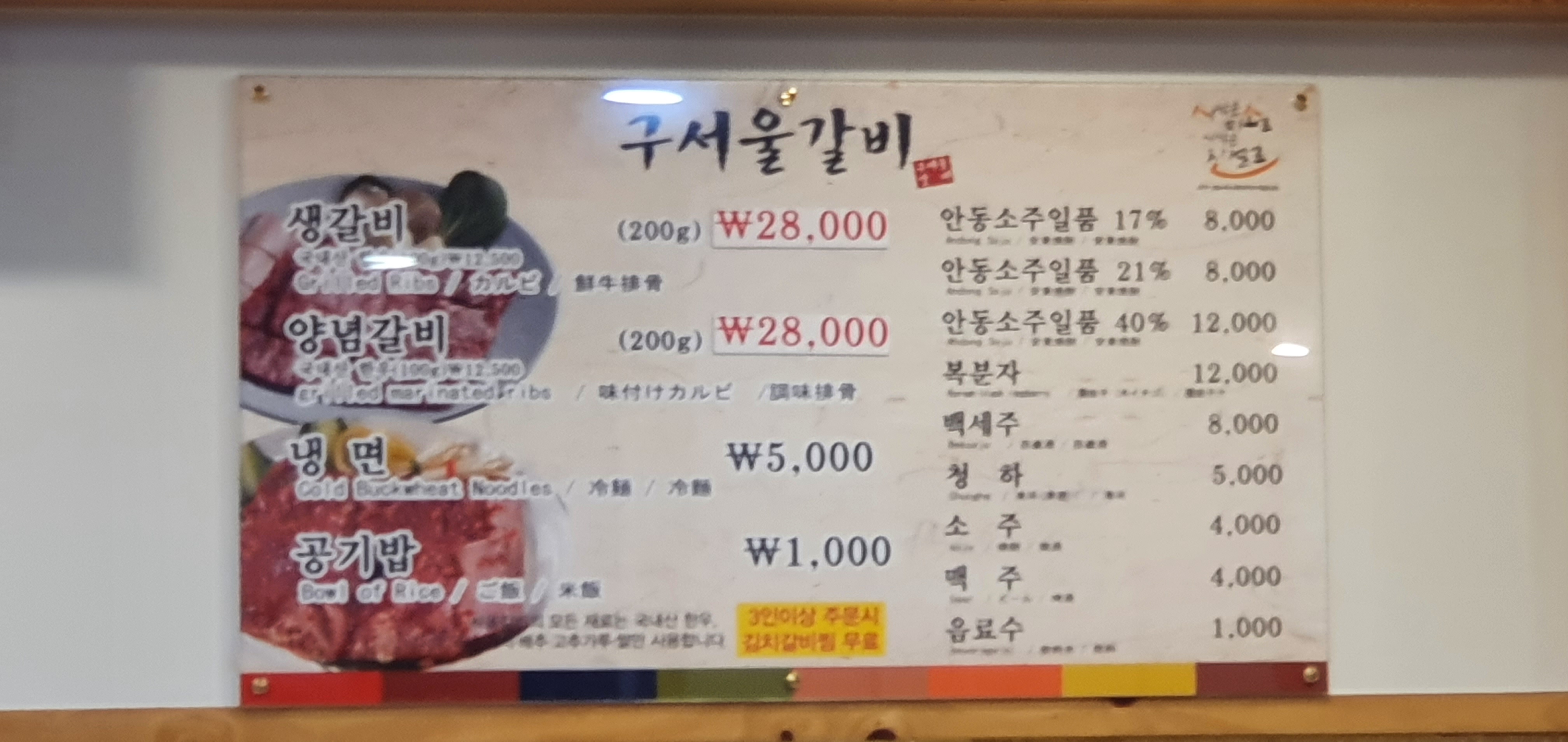 제가 방문한 구서울갈비는 원래 유명한 곳이더군요 시설도 깔끔하고 맛도 좋습니다. 주변의 다른곳도 가격이 다 똑같아서 비슷할것이라 생각이 드네요