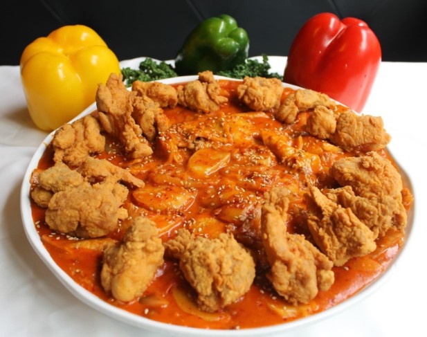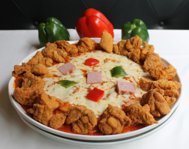 치킨피자김치떡볶이 (치킨+치즈+김치떡볶이) - 치킨 반 마리 기준 23,000원 / 치킨 한 마리 기준 29,500원