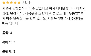 '생활정보 > 지역별 평점정보_한식' 카테고리의 다른 글