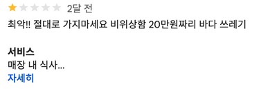 부정적인 의견으로는 "음식이 별로임 방송에 속지 말자", "최악 바다 00기" 라는 의견도 보여지고 있습니다.